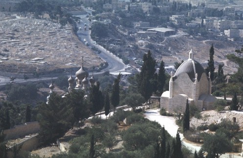 view from top of Mt. of Olives westward toward the Kidron valley |