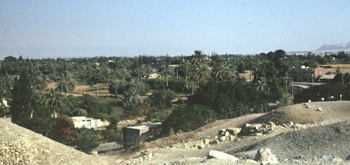 Oasis of Jericho looking east from the excavation site of the pre-Israelite city. |